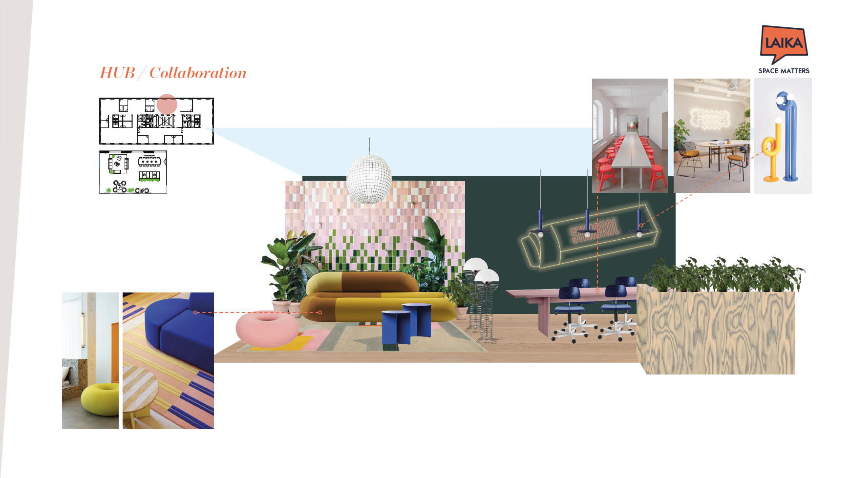 Da EY er en international virksomhed, har de selv nogle tydelige og velproducerede brand – og indretningsmanualer, der skal anvendes på tværs af landegrænser, og som LAIKA således også skal følge. Blandt andet er der faste krav til hvilke zoner kontoret skal have, fx stillezoner, mødelokaler, hub, client facing area mm.