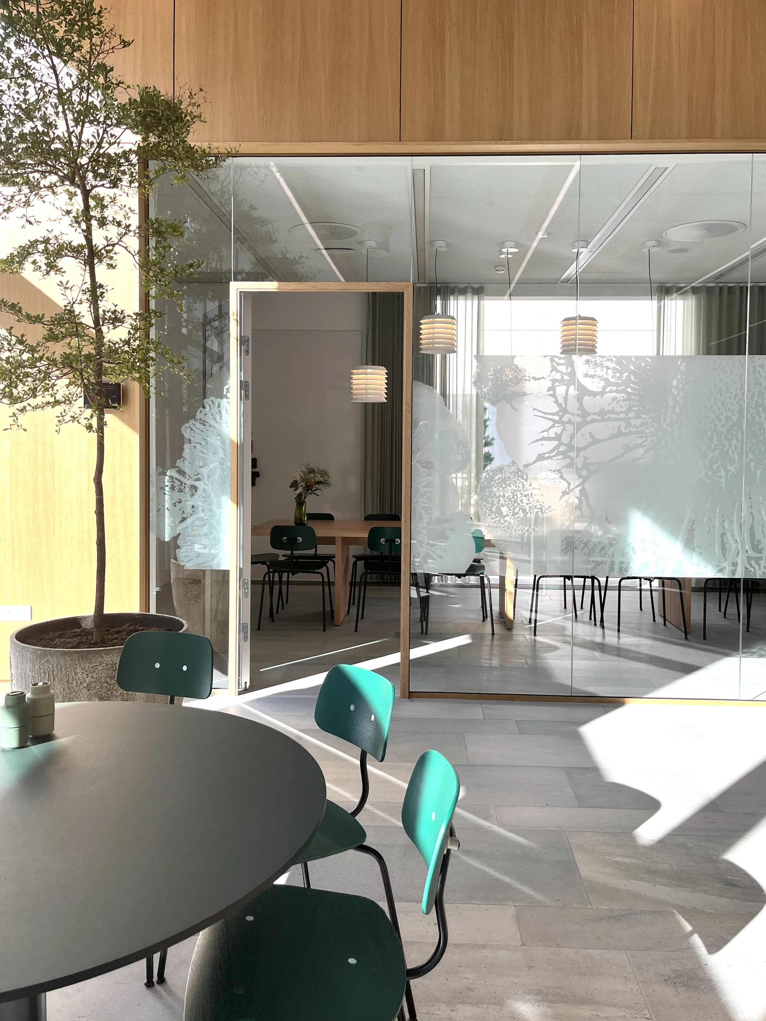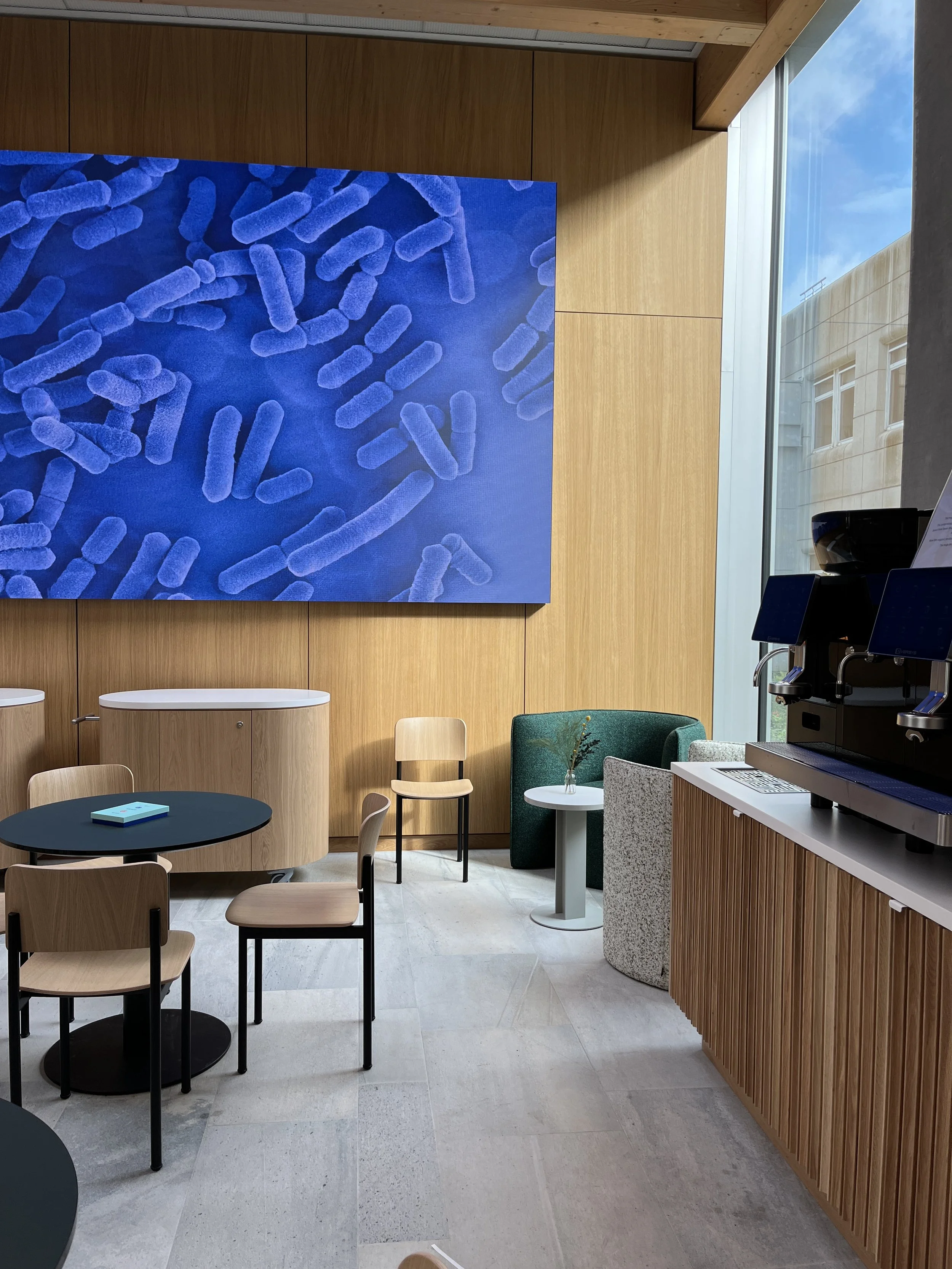 LAIKA stod for implementeringen af en aktivitetsbaseret arbejdsplads, og har drevet både et design-spor samt et omfangsrigt forandringsledelses-spor i tæt samarbejde med Novonesis. Dermed har LAIKA kunnet facilitere en proces, hvor design- og indretningsprincipper blevet udviklet parallelt med at medarbejderne fik viden om nye hybride måder at arbejde på. ’Way of Working’ blev introduceret til medarbejderne, og giver den enkelte medarbejder mere frihed til at vælge, hvor arbejdsopgaverne bedst understøttes, og som styrker videndeling og samarbejdet på tværs af afdelinger og business units. I rammer der ned til mindste styling detaljer minder medarbejderne om den smukke natur de er i, og det særlige univers af produkter, som virksomheden arbejder med.