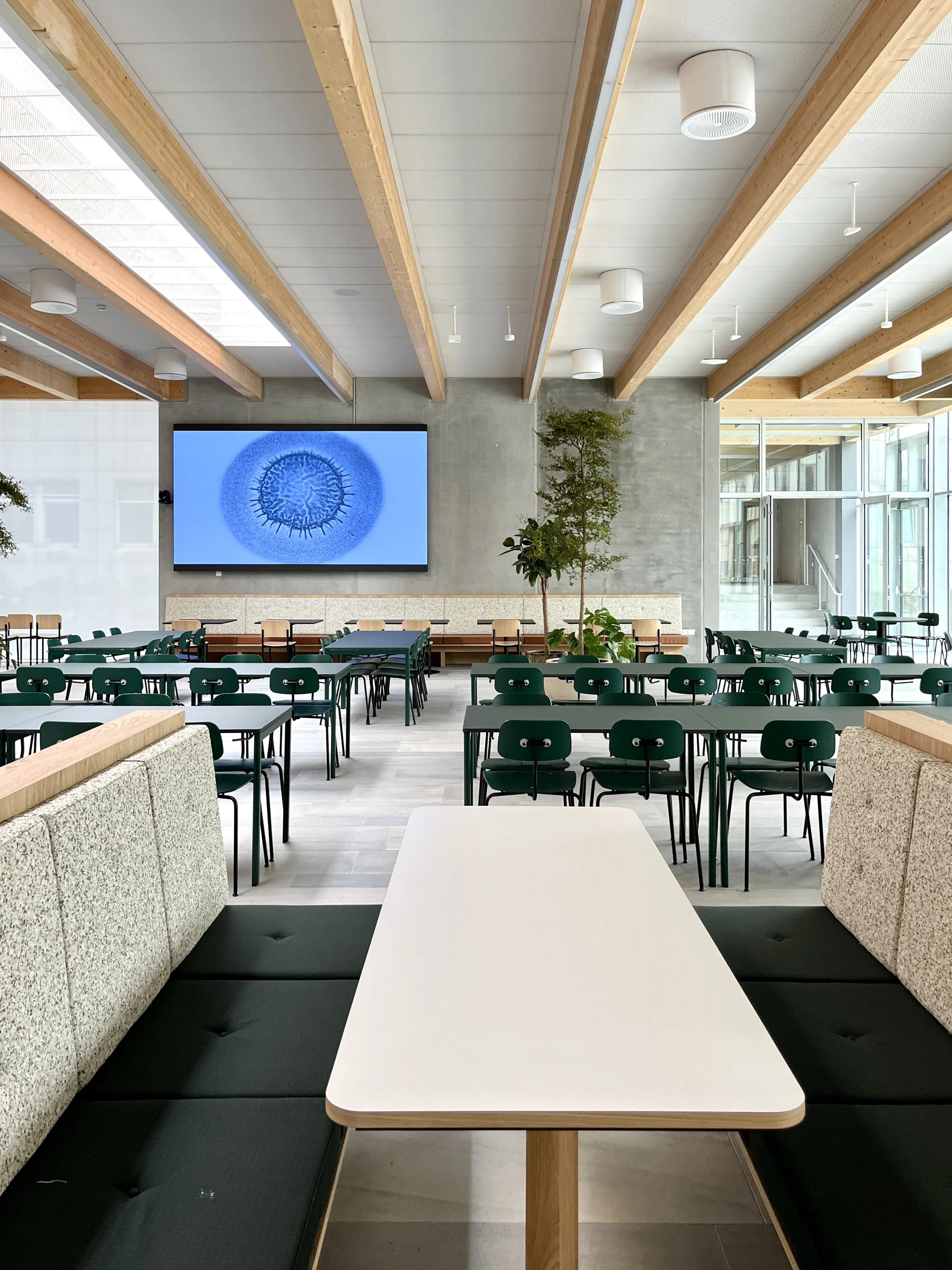 Novonesis Innovation Campus havde et stærkt ønske om at styrke deres DNA, og samtidig have mulighed for at huse gæster og events side om side med hverdagens arbejdsliv. Den nye bygning indeholder således en ny kantine, Customer Experience Center, mødecenter, auditorium, cafe, åbne uformelle mødefaciliteter og reception, og er et centralt omdrejningspunkt for virksomhedens dagligdag, hvor kulturen kan vokse.