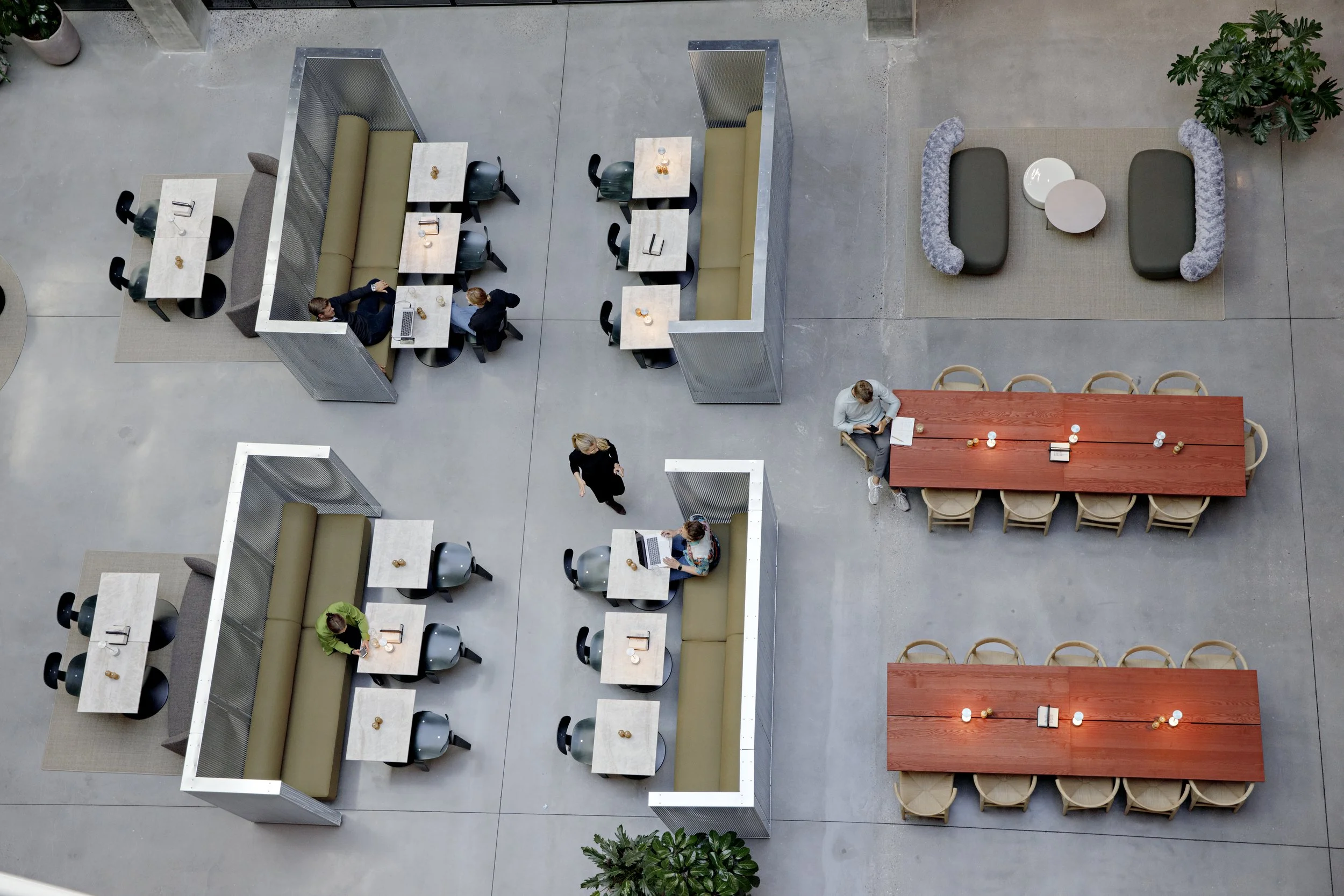 LAIKA har efter et forløb med workshops og brugerinddragelse med alle afdelinger, udformet arbejdsmiljøer som imødekommer og understøtter de ansattes ønsker og behov. Ved at tage udgangspunkt i bygningens layout, er områderne omkring de tre smukke atriumrum, samt zoner mellem skrivebordene, indrettet med en stor palette differentierede miljøer, herunder fly in pladser, fleksible workshop områder, fokuspladser, åbne mødeområder og stand ups.
